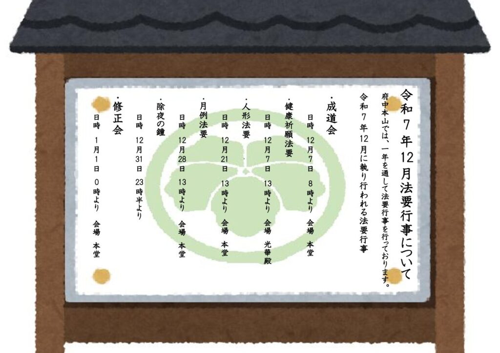 令和7年12月 慈恵院 府中本山 行事予定