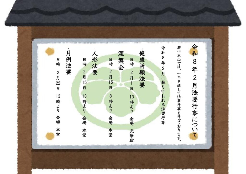 慈恵院 府中本山 令和8年2月 行事予定