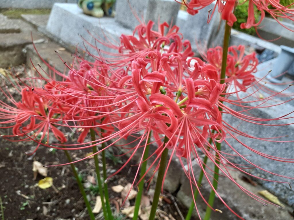 六地蔵の近くで咲いていた彼岸花見れませんでしたが、お花売り場の近くで咲いていました。